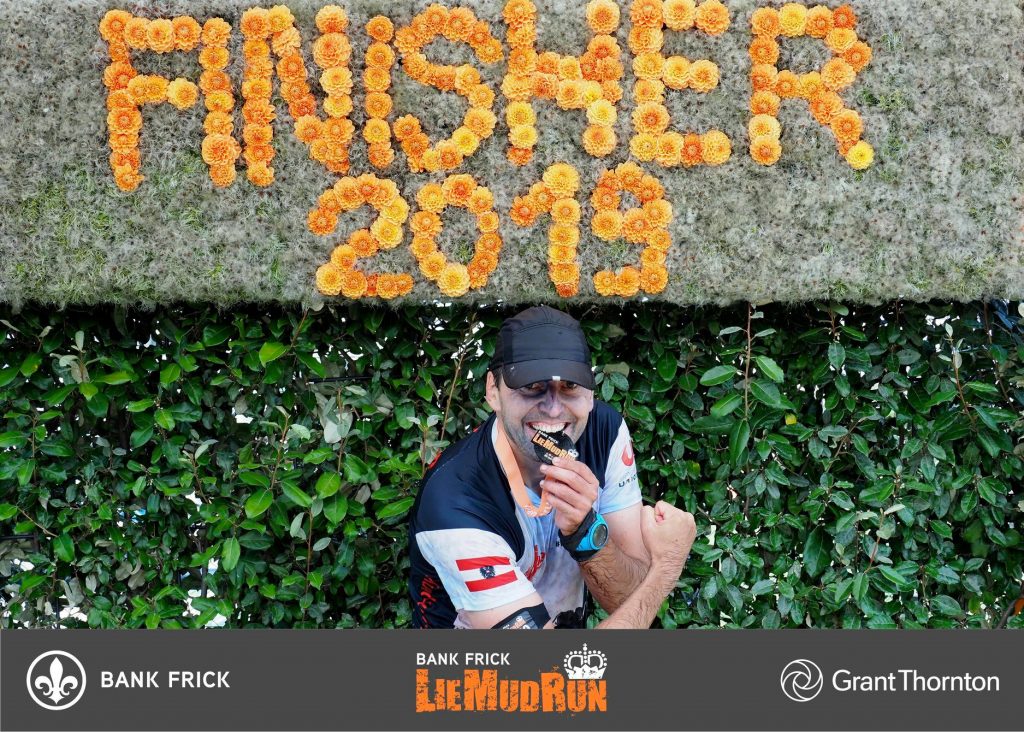 Die letzten Kilometer ins Ziel zogen sich für mich hin, da es die Sonne sehr gut meinte. Abkühlung in Form von Wasser oder Schatten war keiner in Sicht und so trottete ich mit einem netten Schweizer dahin. Der Kollege hatte sehr mit Krämpfen in beiden Waden zu kämpfen und so gab ich ihm meinen Magnomed Stick zur Linderung. Er warf ihn dankbar ein und wir plauderten ein wenig. Kurz vor dem Ziel warteten 3 Wände. 2x mit 1,50m und eine mit 3,50m. Er lehnte mein Angebot der Hilfe zuerst ab, aber nach einem schmerzhaften Sprungversuch hiefte ich den guten über die Wände 😊 Eine schönes Holzmonkeybarkonstrukt und ein Gatschbecken später gab es noch schnell eine Ladung Farbpulver in die Fre… äh das Gesicht bevor man die Finishermedaille ausfassen durfte.