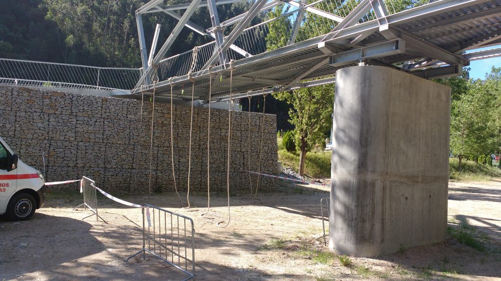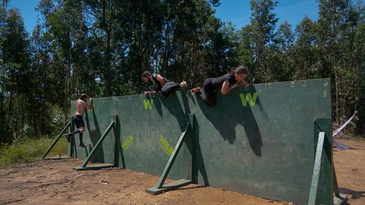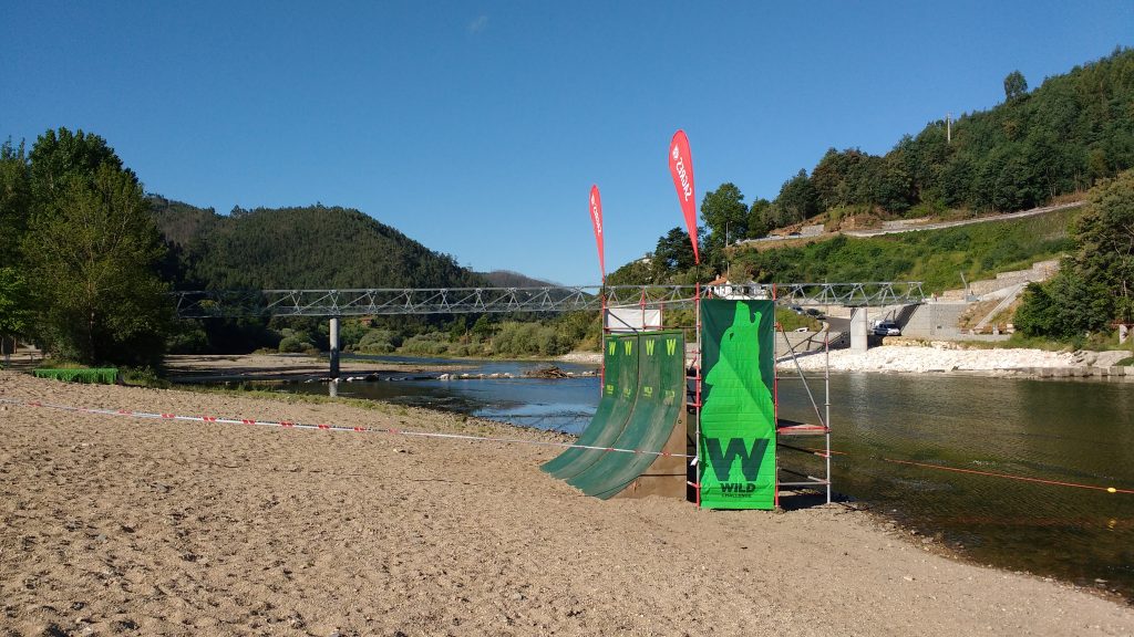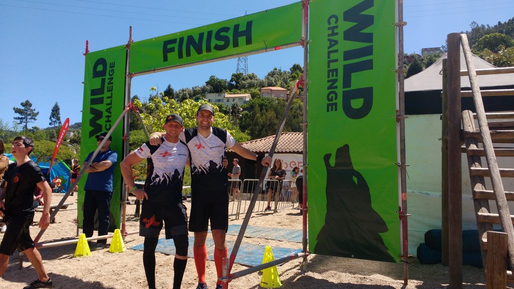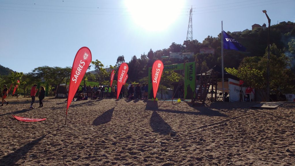 Mit ein paar Ausführungen zum Lauf (wir verstanden natürlich gar nix weil ja in Portugiesisch *hihi*) startete unsere 10:15‘er Open Welle pünktlich in die Wild Challenge. Christian stimmte meinem Vorschlag zu die ersten 2 Hindernisse etwas zügiger anzulaufen um nicht bei den Röhren in einen Stau verwickelt zu werden. Langen Schrittes zog ich also ab und Christian folgte im Windschatten. Eine Mauer mit Öffnung (a.k.a. Through) gekonnt genommen, rein in den Fluss zur Wende und wieder raus hin zu den Röhren. Wir kamen staulos durch und trabten im gegenseitigen Einvernehmen sodann gemütlich weiter.